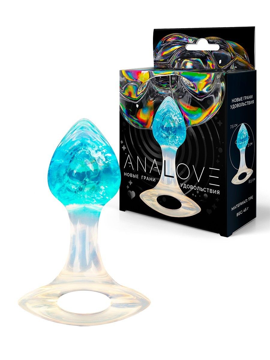Голубоватая анальная пробка с ручкой - 8,5 см. 529787
