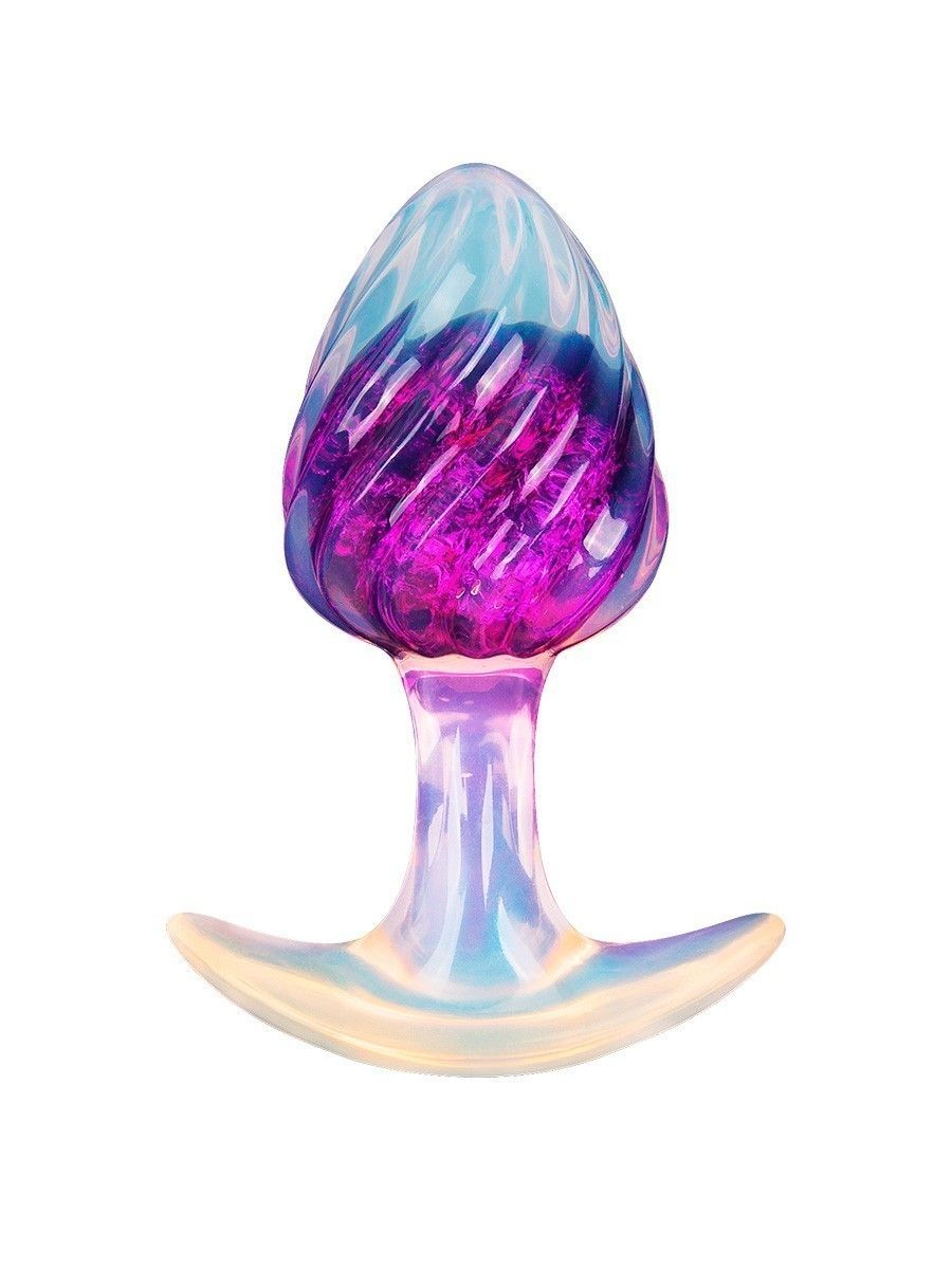 Голубая анальная пробка Cutie Small с фиолетовым кристаллом - 7,5 см. 64370