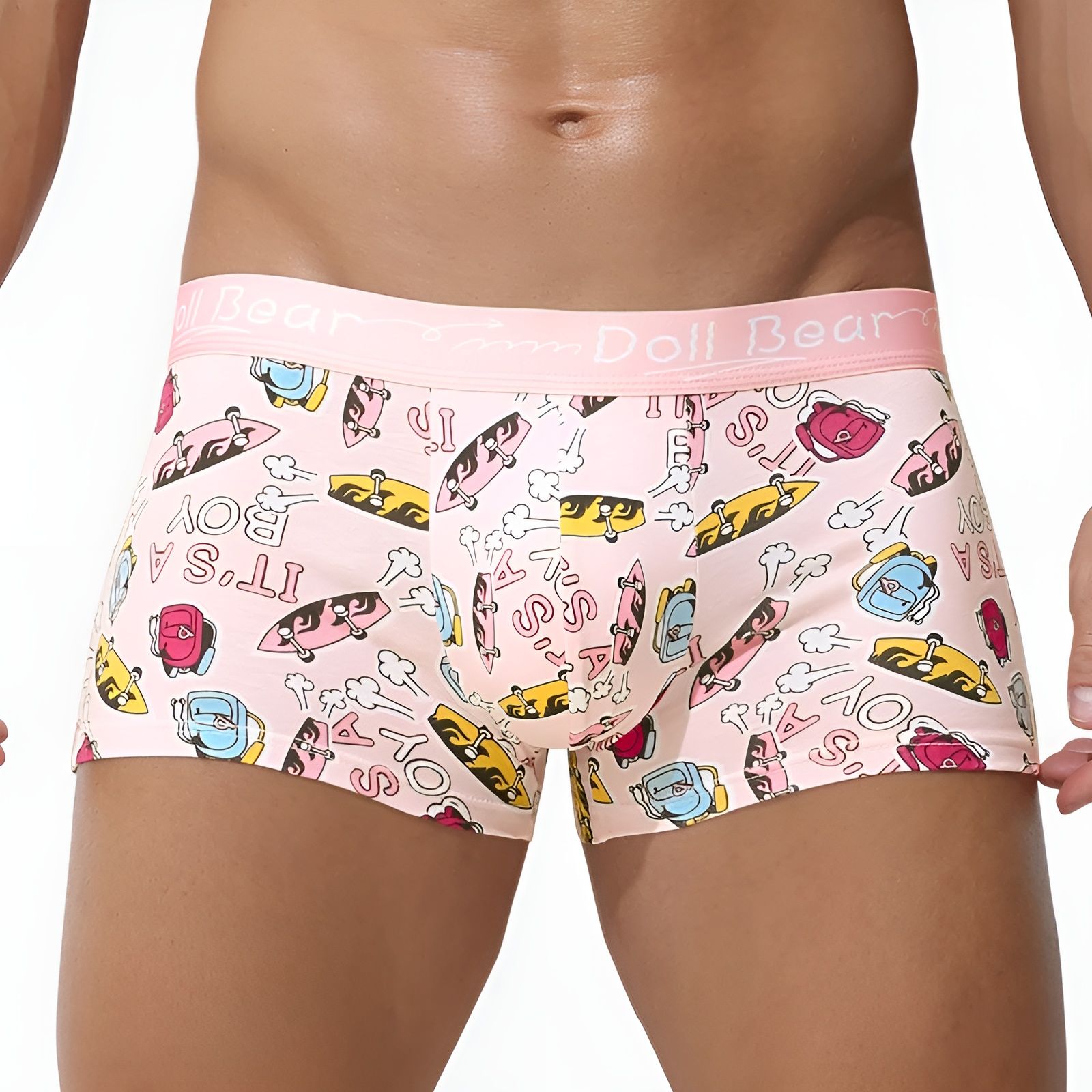 Розовые трусы-боксеры с принтом в виде скейтбордов.